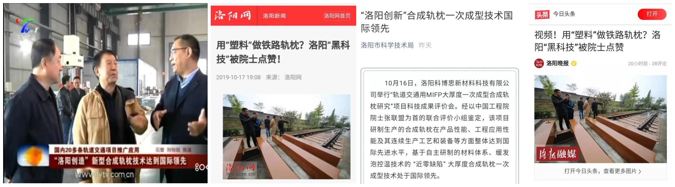 10月16日,洛陽(yáng)科博思新材料科技有限公司的“軌道交通用M-IFP大厚度一次成型合成軌枕研究”項目科技成果鑒定評價(jià)會(huì )在洛陽(yáng)圓滿(mǎn)完成。經(jīng)以中國工程院院士張聯(lián)盟為首的聯(lián)合評價(jià)小組鑒定,公司研制生產(chǎn)的M-IFP大厚度一次成型合成軌枕在產(chǎn)品性能、工程應用性能及其連續生產(chǎn)工藝和裝備等方面整體達到國際先進(jìn)水平,基于自主研制的材料體系、緩發(fā)泡控溫技術(shù)的 “近零缺陷” 大厚度合成軌枕一次成型技術(shù)處于國際領(lǐng)先。河南日報、洛陽(yáng)日報、洛陽(yáng)電視臺、洛陽(yáng)晚報、市科技局、今日頭條、《世界軌道交通》等媒體紛紛進(jìn)行了報道,給予了高度評價(jià)和贊譽(yù)!