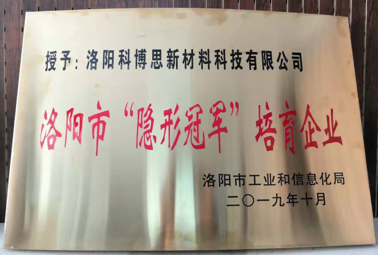 11月8日上午,洛陽(yáng)市工信局組織召開(kāi)2019年度洛陽(yáng)市“隱形冠軍”(培育)企業(yè)座談會(huì )并舉行授牌儀式,洛陽(yáng)科博思新材料科技有限公司授予洛陽(yáng)市“隱形冠軍”培育企業(yè)。