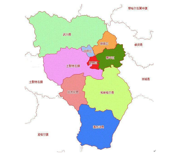 呼和浩特中心城區含賽罕區、新城區、回民區、賽罕區和兩個(gè)國家級經(jīng)濟開(kāi)發(fā)區(金川開(kāi)發(fā)區、如意開(kāi)發(fā)區)。