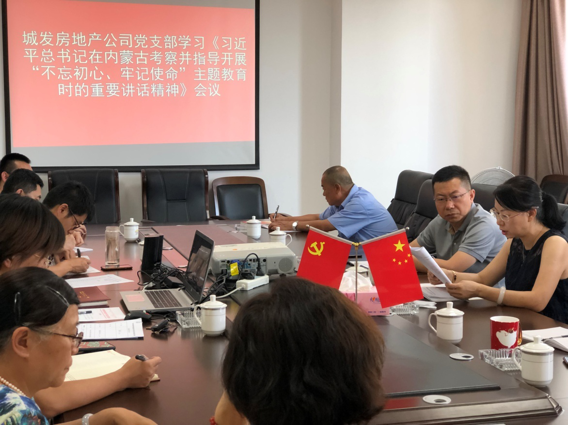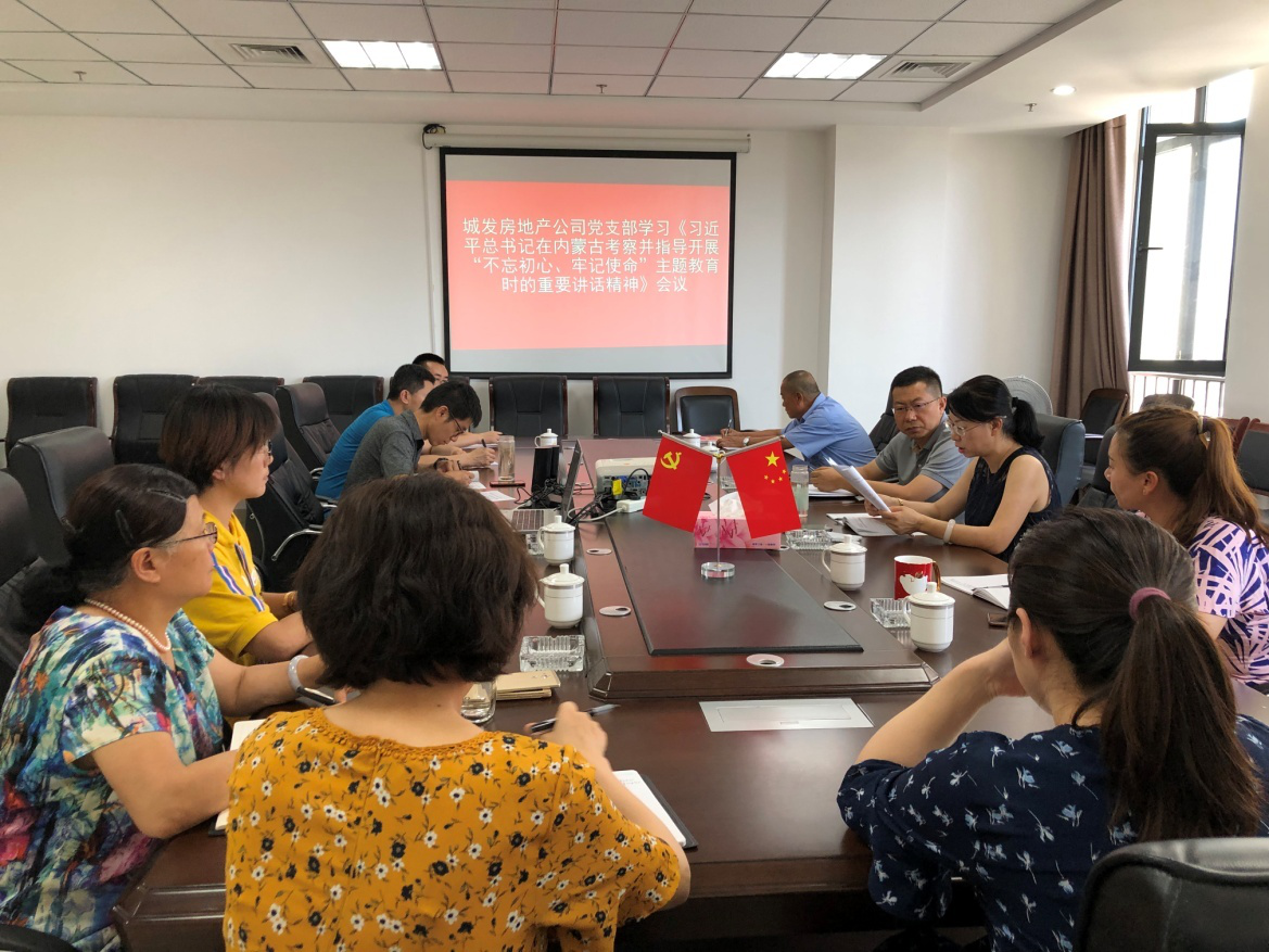 7月25日,房地產(chǎn)公司黨支部組織公司全體黨員干部和入黨積極分子,在城發(fā)集團11樓會(huì )議室學(xué)習了習近平總書(shū)記在內蒙古考察并指導開(kāi)展“不忘初心、牢記使命”主題教育時(shí)的重要講話(huà)精神。