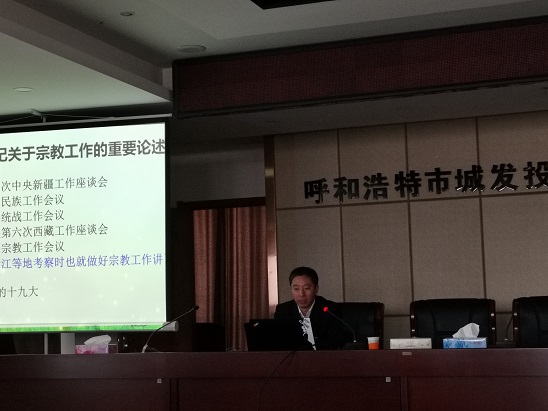 11月5日,城發(fā)公司黨委邀請市黨校黨史黨建教研室副教授、內蒙古習近平新時(shí)代中國特色社會(huì )主義思想研究中心研究員蘇航同志在公司18樓會(huì )議室開(kāi)展了“扎實(shí)做好新時(shí)代我區宗教工作——全面貫徹習總書(shū)記關(guān)于宗教工作重要論述”的專(zhuān)題講座。公司領(lǐng)導班子、全體中層干部約90人進(jìn)行了集中學(xué)習。