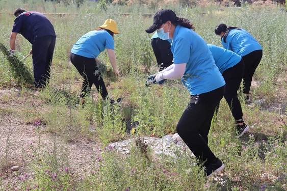 活動(dòng)現場(chǎng),黨支部書(shū)記娜仁、經(jīng)理史濤帶領(lǐng)大家在各自的責任區域內分片作業(yè)。大家在炎炎烈日下,揮汗如雨、干勁十足,有的拔除蒿草、有的收集清運……經(jīng)過(guò)一下午地辛勤作業(yè),小區及周邊的蒿草不見(jiàn)了,空氣清新了,環(huán)境也變美了。