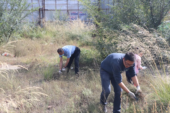 活動(dòng)中,大家在張永同志的帶領(lǐng)下進(jìn)行地毯式清除,大家戴手套、口罩、全副武裝,采取連根拔出和收割的方式徹底消除蒿粉傳播漂浮,切斷蒿粉過(guò)敏原并將拔出的蒿草及時(shí)清運,以免草籽散落再次生長(cháng)。