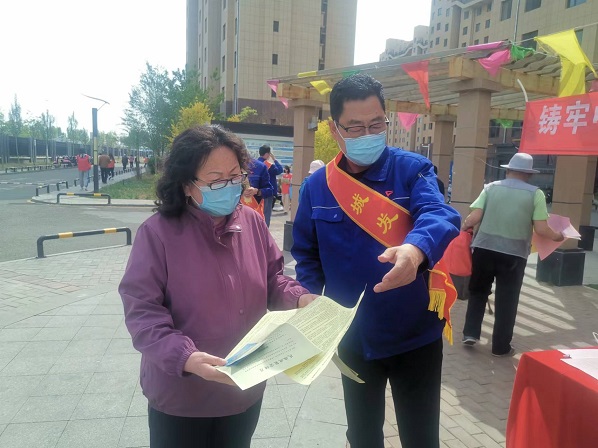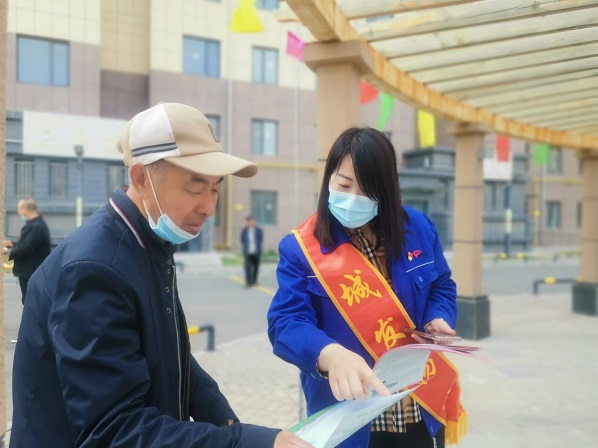 活動(dòng)現場(chǎng),黨支部書(shū)記娜仁按照既定方案,帶領(lǐng)大家分頭行動(dòng)起來(lái)。“民族政策宣傳組”的隊員們一邊向過(guò)往的居民發(fā)放黨的民族理論和民族政策宣傳單,一邊做好現場(chǎng)宣傳講解,重點(diǎn)宣傳了黨的民族政策的主要內容、民族平等政策的內涵、民族區域自治政策的內涵、現階段我國民族工作的主題、現階段發(fā)展少數民族經(jīng)濟的方針、民族團結關(guān)系的“三個(gè)離不開(kāi)”內容、民族團結工作的“四個(gè)維護”內容及習近平總書(shū)記對各民族提出的“五個(gè)認同”等內容;講解了如何理解“中華民族共同體意識”、如何理解“推廣普及國家通用語(yǔ)言文字教育”等內容。“安全防火宣傳組”的隊員們分三組入樓開(kāi)展安全防火宣傳檢查,重點(diǎn)對樓道內個(gè)別存在的亂堆放雜物、亂停非機動(dòng)車(chē)及擅自占用、堵塞消防通道的住戶(hù)張貼清理通知單、宣傳將樓道占為己用的重大安全隱患,并告知業(yè)主限期自行清理,切實(shí)保障廣大業(yè)主的居住安全和環(huán)境衛生。